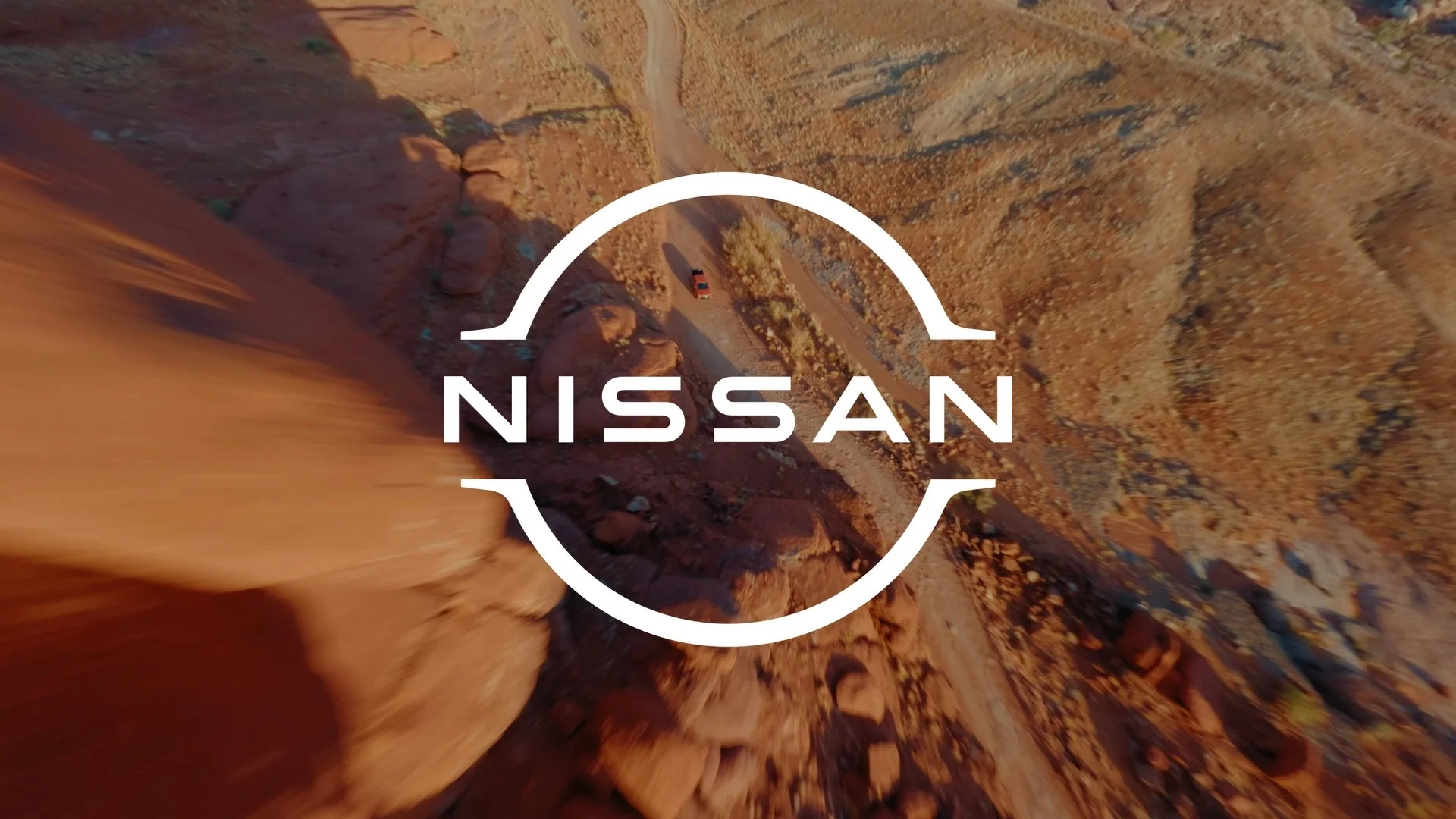A vehicle approaching a gated road in a desert landscape with mountains in the background, overlaid with the Toyota logo in red.